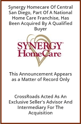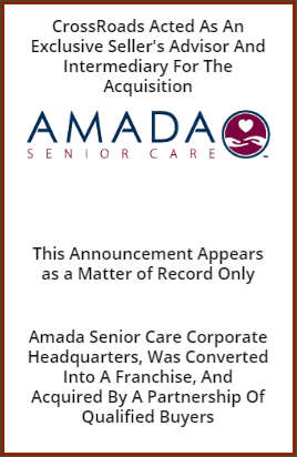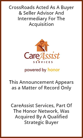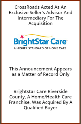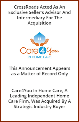 Selling Health Care Businesses is our specialty. CrossRoads Business Brokers’ President is the recent recipient of two coveted awards including the IBBA Platinum Chairman’s Circle Award and M&A Platinum Club Award, that puts us in the top 1% of Brokers nationwide.With a footprint in multiple states across the country and access to strategic buyers, private equity groups and their portfolio companies, we can operate in any location across the country.